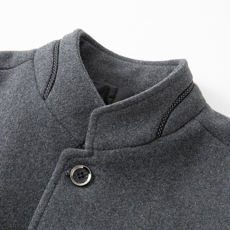 Confeccionado com forro interno reforçado, garante conforto térmico sem abrir mão da leveza. As ombreiras estruturadas destacam a silhueta masculina com imponência, enquanto os cinco botões em acrílico e os detalhes costurados na gola e nas mangas conferem sofisticação em cada centímetro.